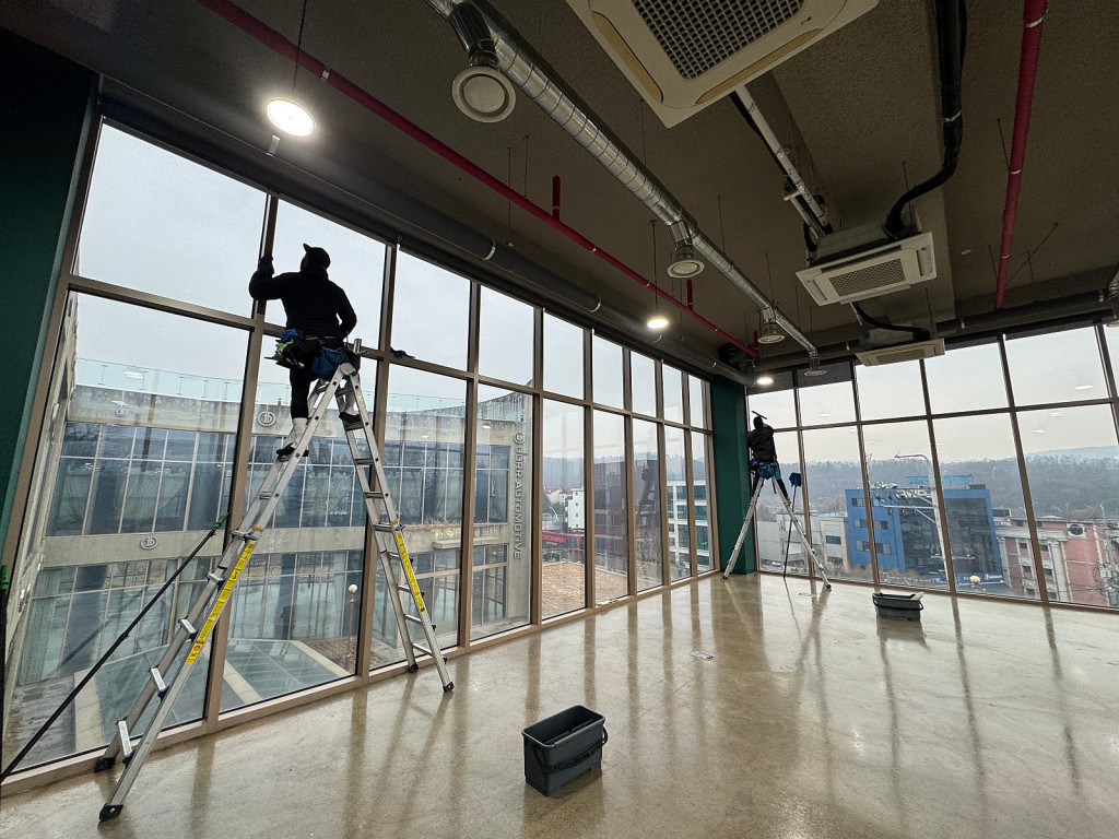 수도권 유리창 청소 시공 능력 1위 업체 퍼스트클린은현장 구조와 높이에 맞춰 전용 장비와 안전 장치를 사용해상단 유리까지 꼼꼼하게 작업을 진행했습니다.묵은 오염을 제거한 뒤 시야가 확 트이는 깨끗한 상태로 마무리했습니다.